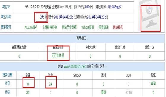 三个数据:时间9天,收录0,外链80。没有百度快照,谷歌的收录是24。我们先来看看谷歌,我自己最近也做了一个网站“成都SEO”,因为有点忙没有更新。百度只收录了首页,但是谷歌的收录量却是很大有100多。其实,我的文章只更新了不到40篇。从图上可以看到,谷歌收录只有24篇,与我的网站对比可以知道案例中的新站其实内容很少。想想也是,9天的新站能够有多少内容呢?但是,就这么低的内容量(且不说质量),外链竟然有80个了。看来外链确实很容易获得。